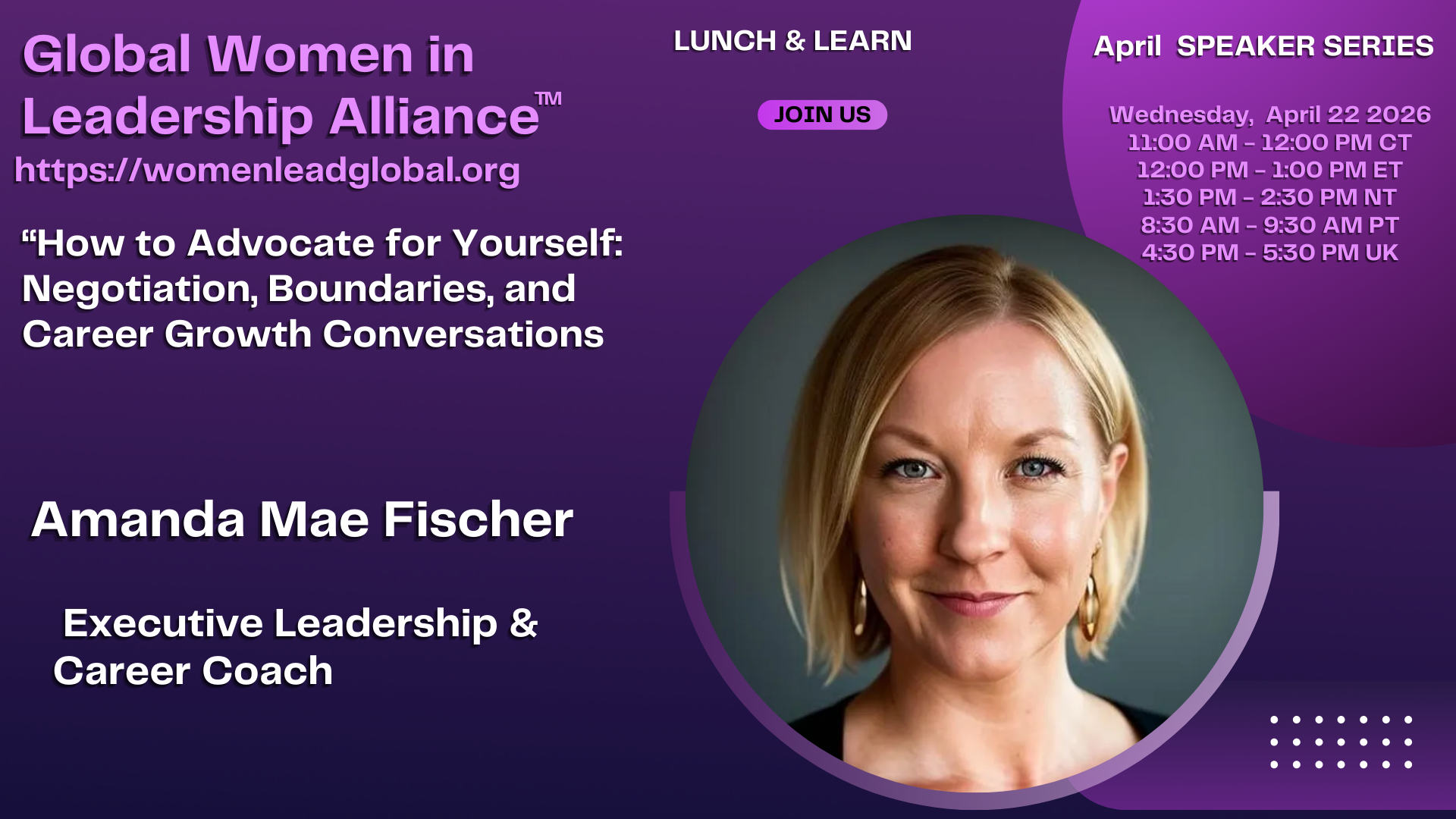 THE GLOBAL WOMEN IN LEADERSHIP ALLIANCE™Virtual Leadership Roundtable Program: AI GovernanceTopic: AI, Digital Skills & Technology for Women LeadersDate: Wednesday, April 29, 2026Time: 12:30 – 1:30 p.m. Eastern Standard TimeFormat: Virtual Leadership Roundtable The Global Women in Leadership Alliance™ invites women leaders from across Canada...