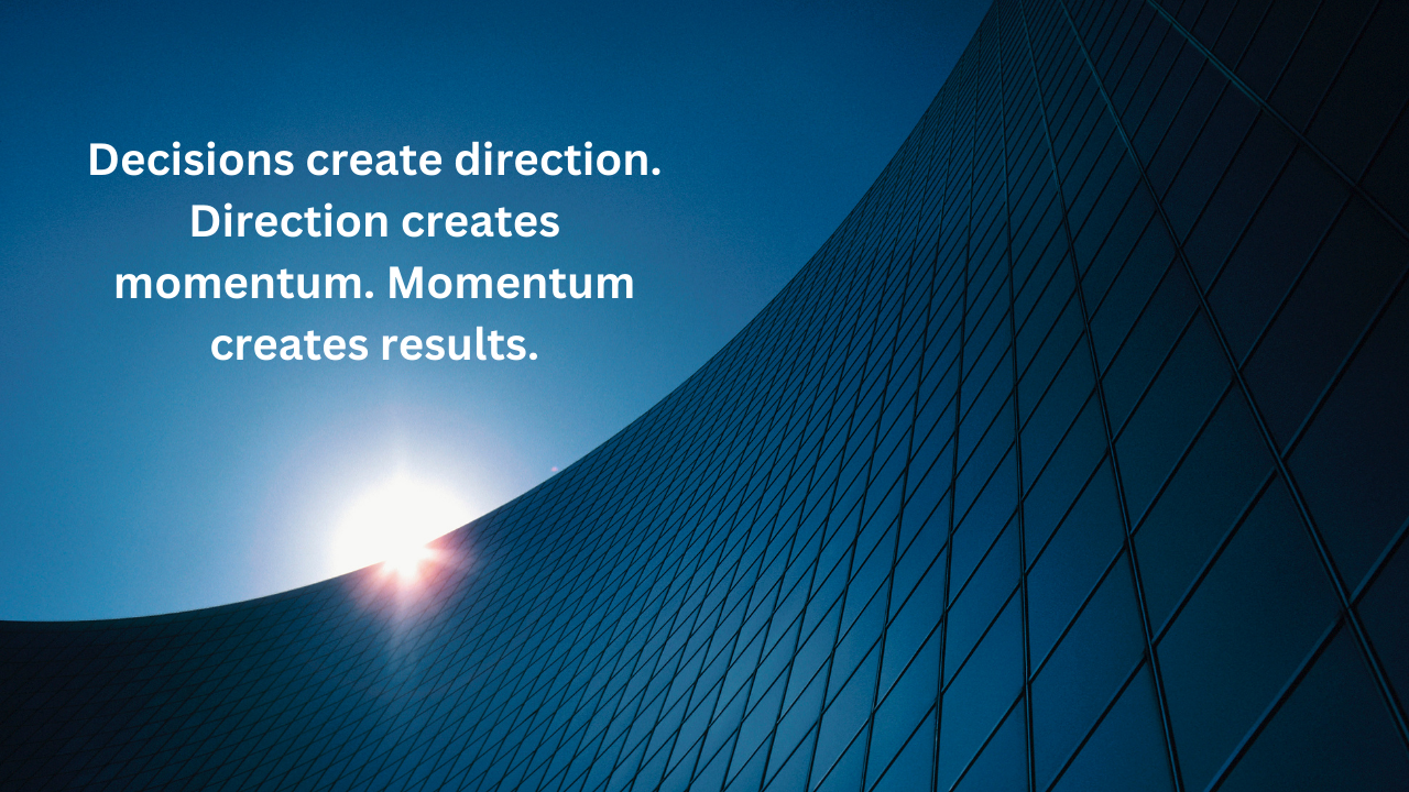 Decisions create direction. Direction creates momentum. Momentum creates results.